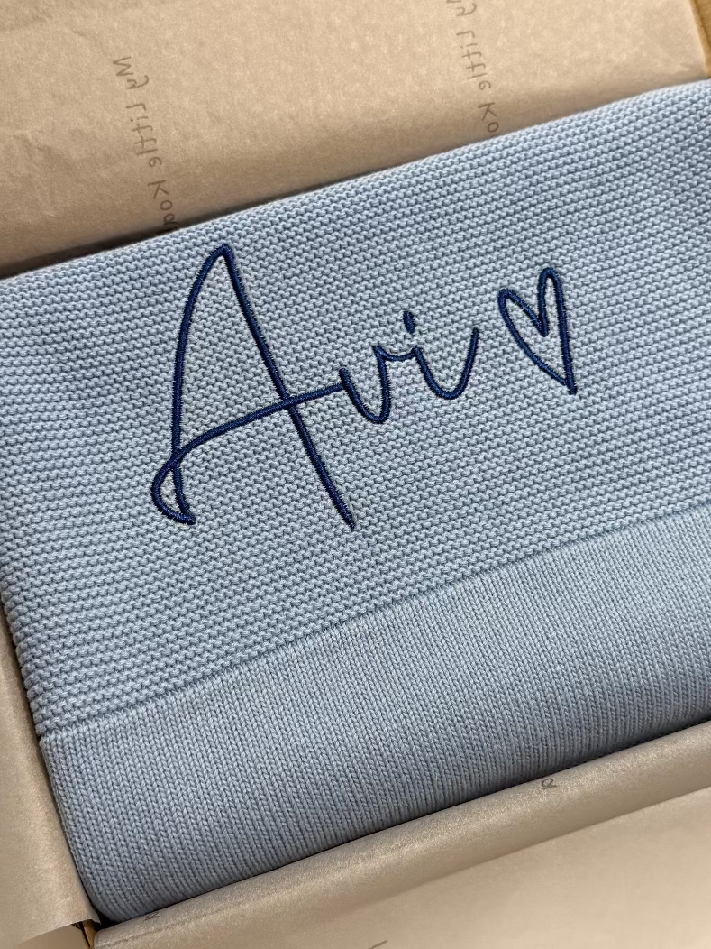 Each personalised baby blanket is handcrafted with love and care, embroidered with your chosen name for a timeless keepsake.