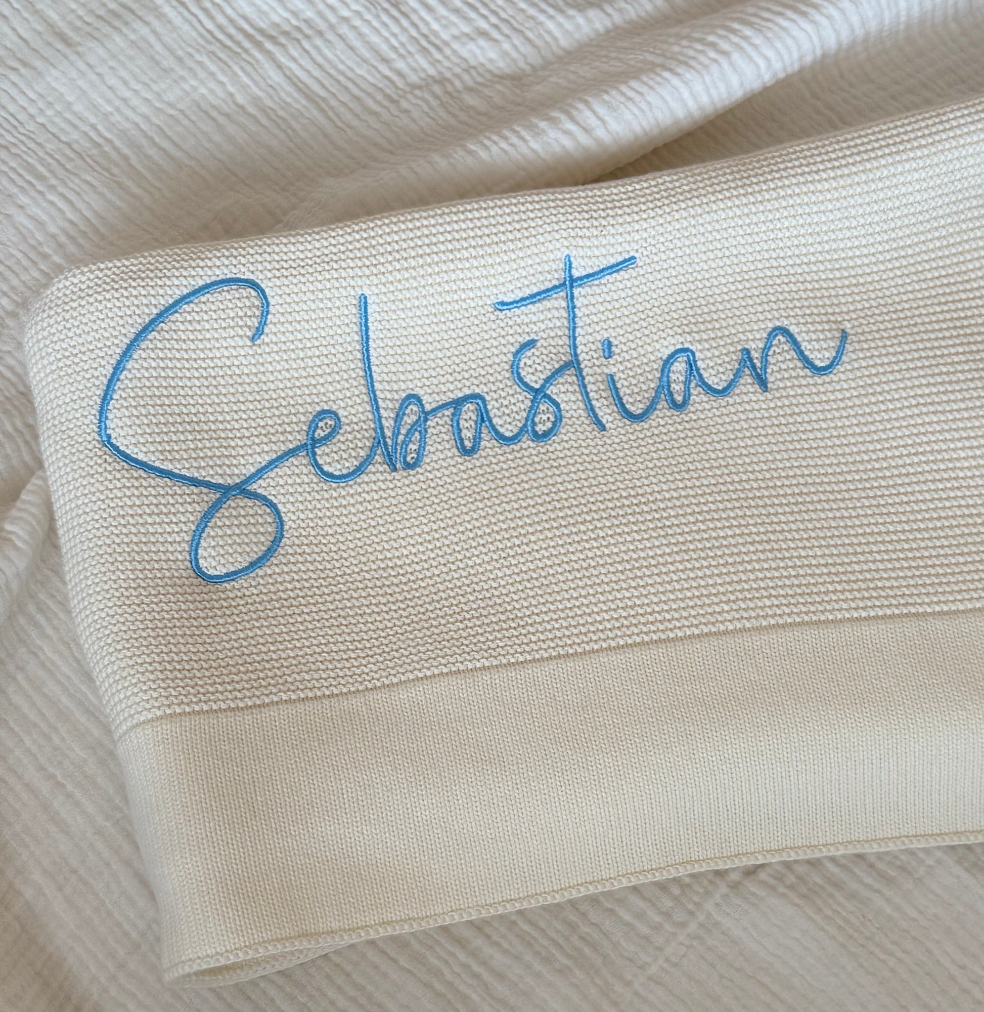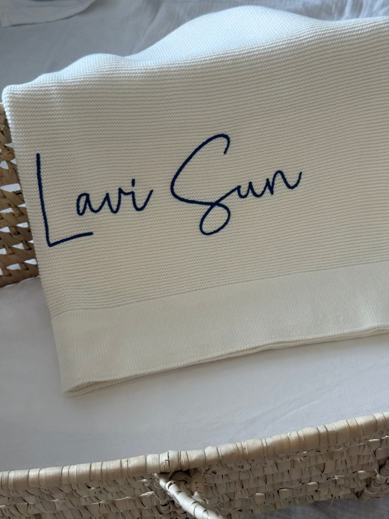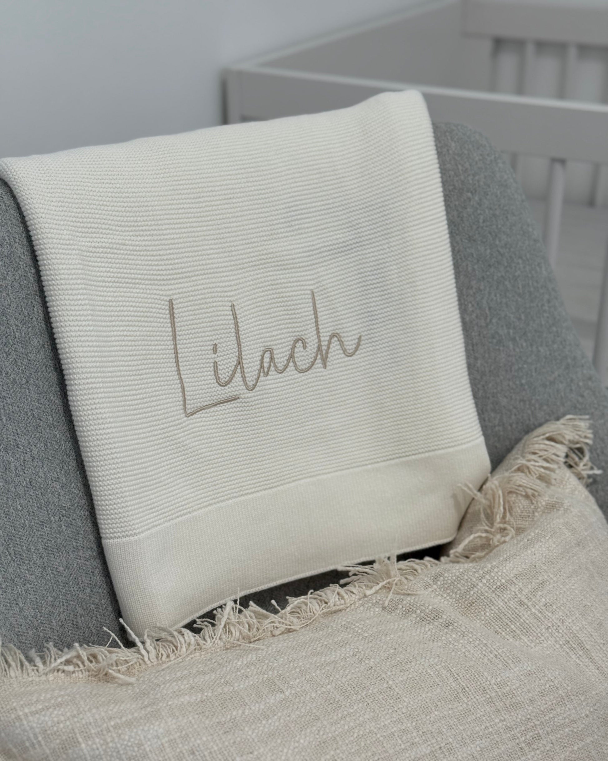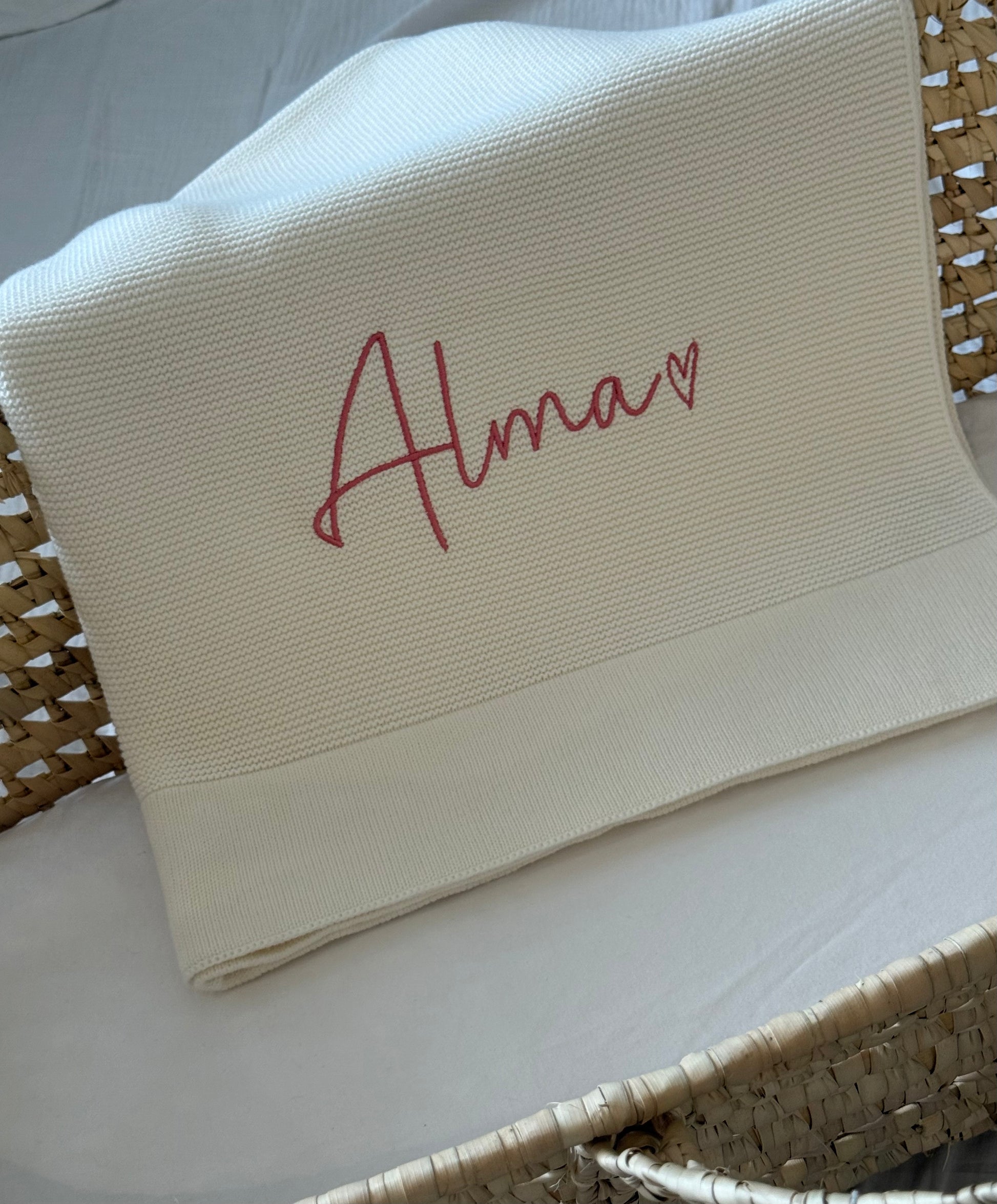 Each personalised baby blanket is handcrafted with love and care, embroidered with your chosen name for a timeless keepsake.